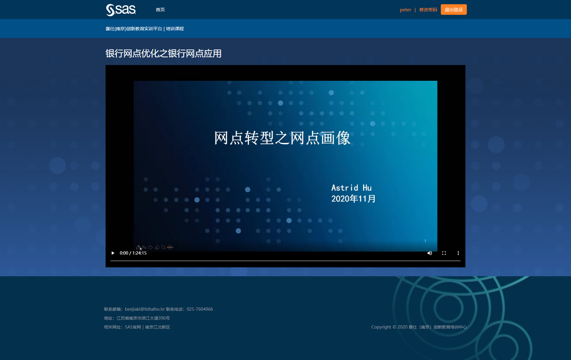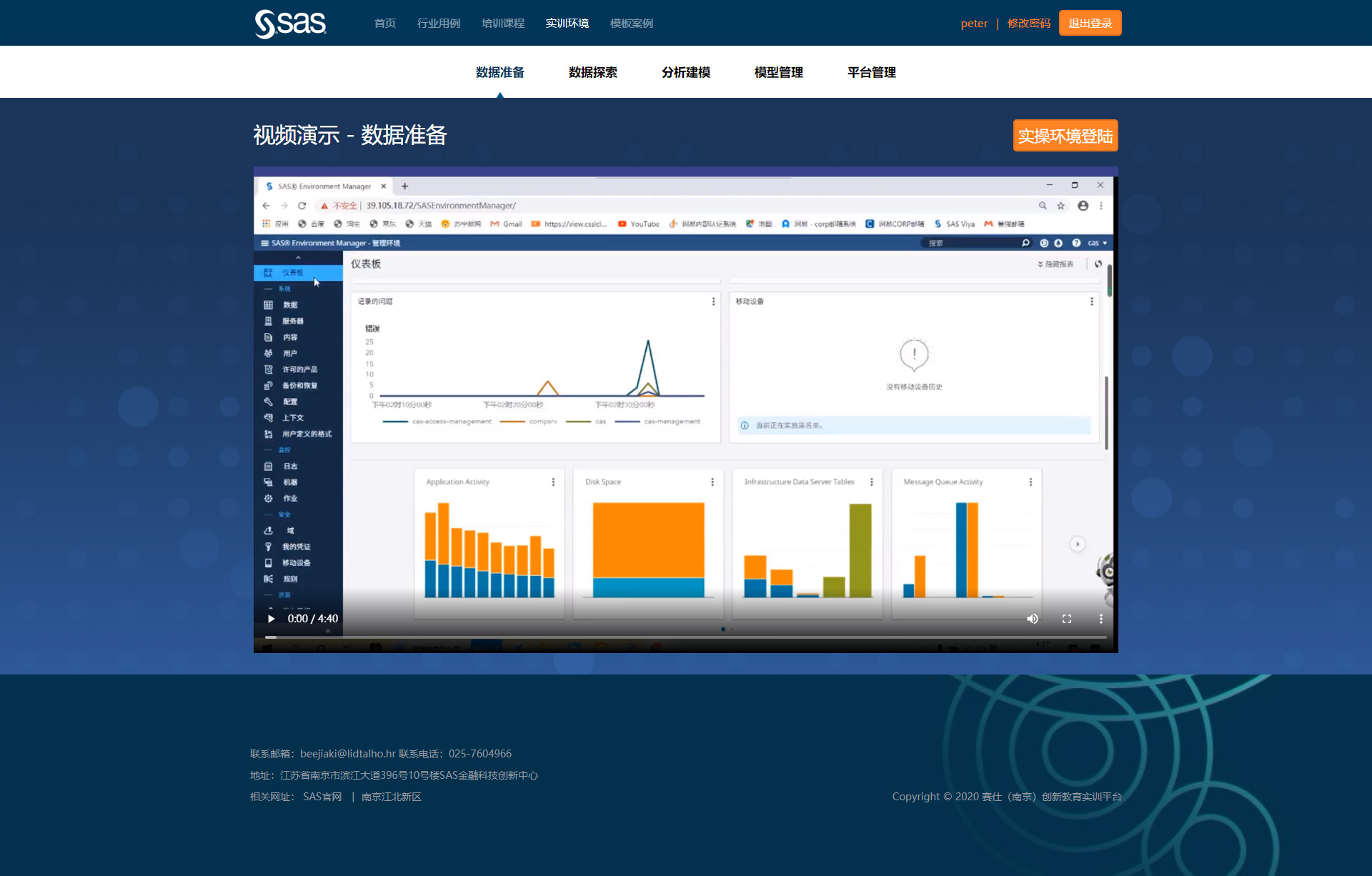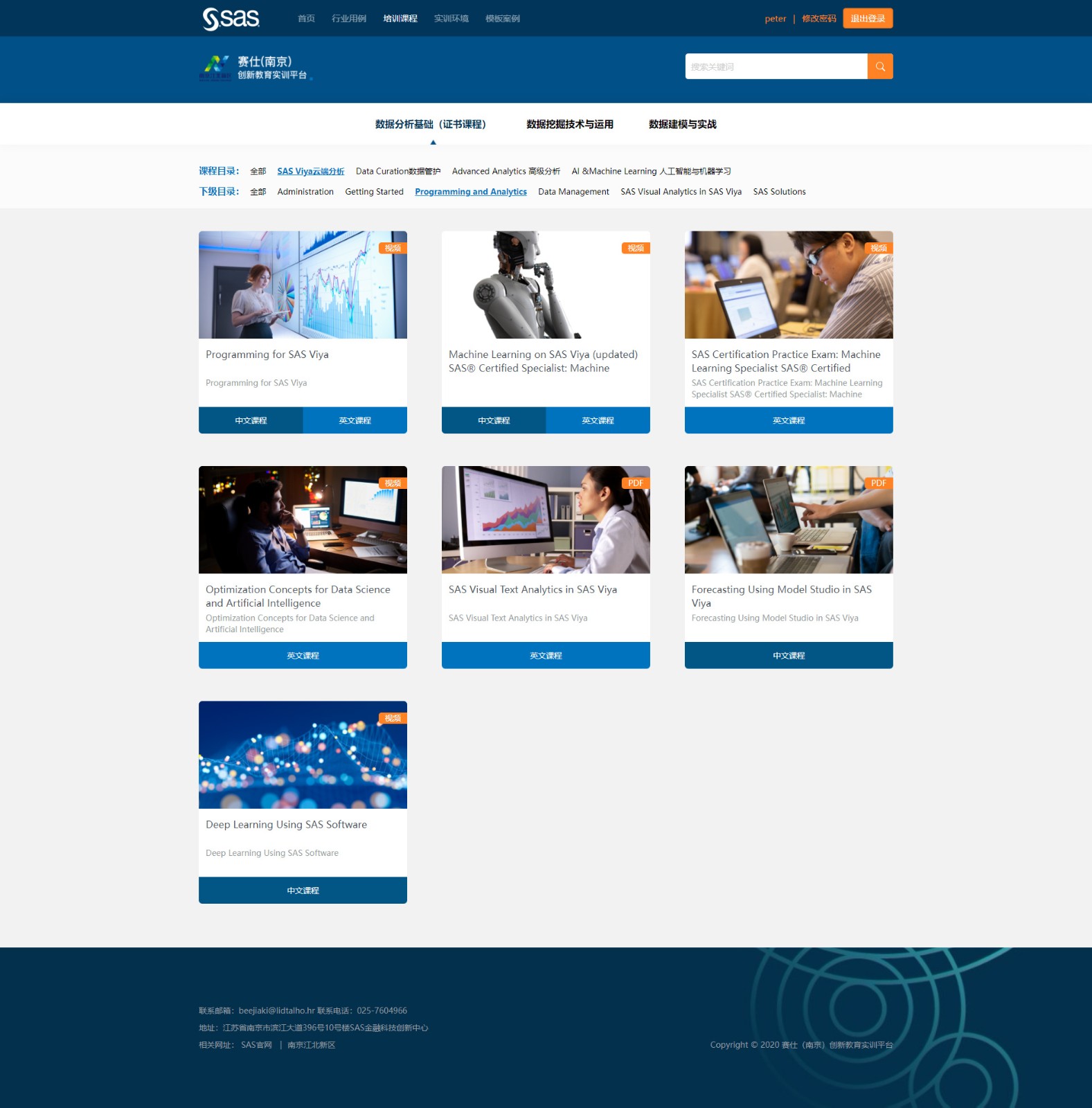 本平臺由我公司開發(fā)為賽仕獨(dú)家訂制,主要服務(wù)對象為SAS新用戶和即將采購SAS軟件的體驗(yàn)用戶,平臺與SAS的Viya系統(tǒng)對接,可在線通過視頻學(xué)習(xí)各種SAS軟件技能,還可以在線實(shí)操,體驗(yàn)軟件真實(shí)環(huán)境。